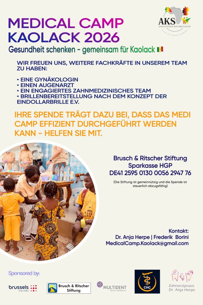 Das Medical Camp Kaolack 2026 steht für gelebte Solidarität und konkrete Hilfe. Es zeigt, wie viel möglich wird, wenn Menschen ihre Kompetenzen und ihr Mitgefühl bündeln. Gemeinsam können wir Gesundheit schenken – und Hoffnung.